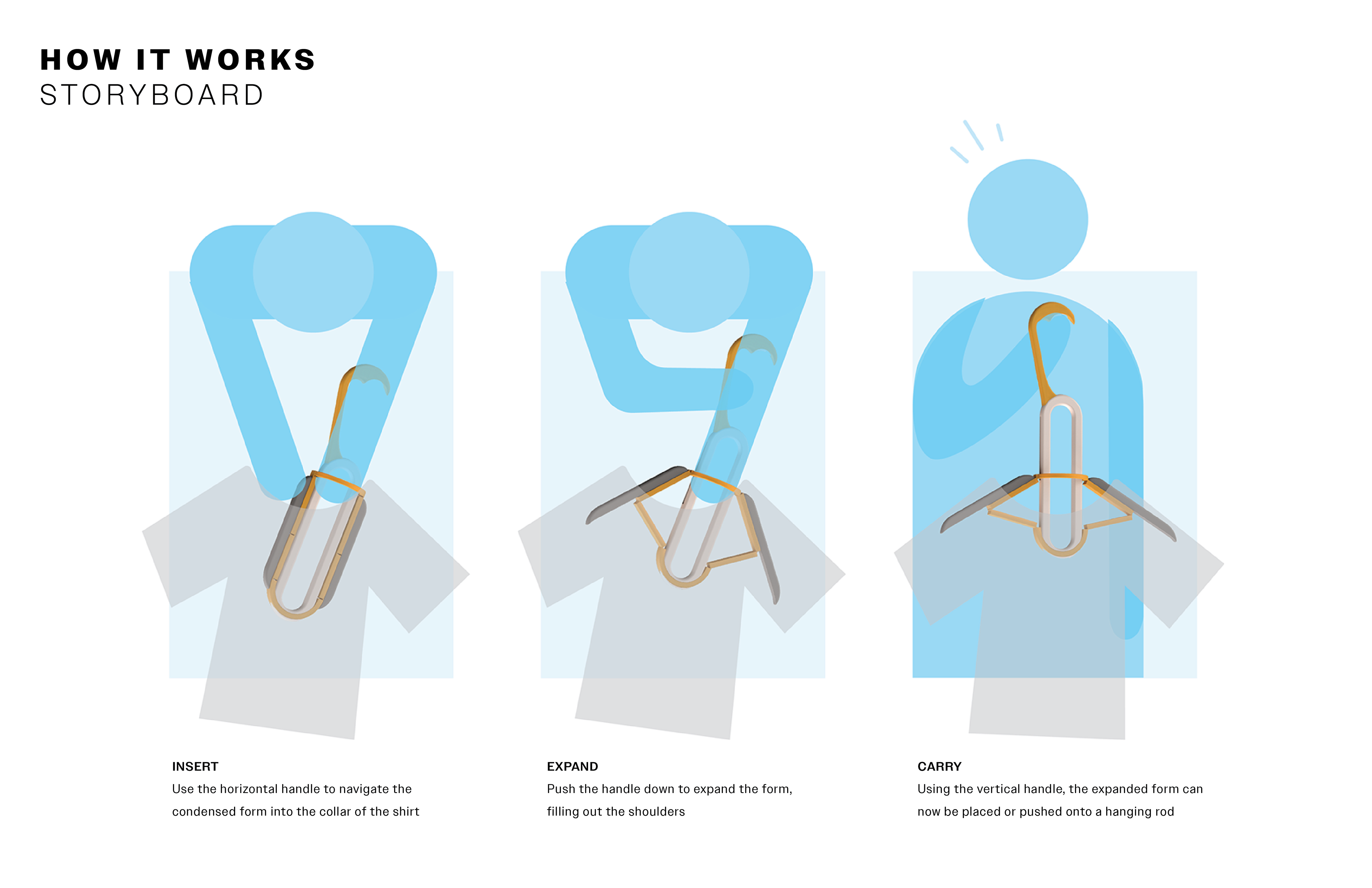 Conditions such as arthritis, Parkinson's, and hypotension create challenges with everyday tasks that require hand and finger dexterity. This project aims to return the independence to these users' wardrobes by creating a clothes hanging option that takes on the role of dexterity for the user.